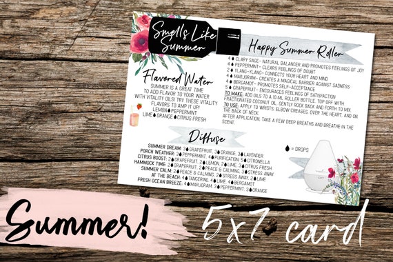 Summer Essential Oil Card Summer Diffuser Recipes Summer Roller 5x7 Instant Download Young Living
